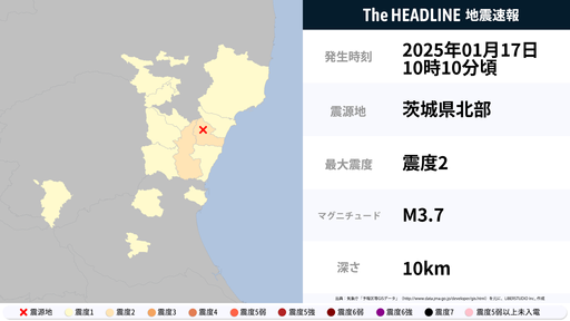 1月17日10時10分頃、茨城県で最大震度2の地震を観測