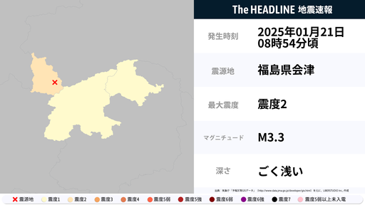 1月21日8時54分頃、福島県で最大震度2の地震を観測