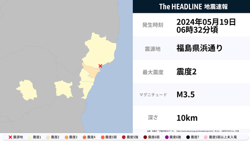 5月19日0時46分頃、福島県で最大震度3の地震を観測
