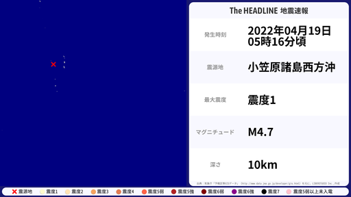 4月19日05時17分頃、東京都で最大震度1を観測する地震がありました。