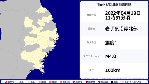 4月19日11時57分頃、青森県などで最大震度1を観測する地震がありました。