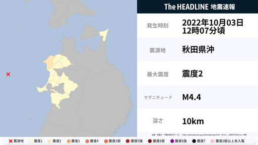 10月3日12時7分頃、青森県で最大震度2の地震を観測
