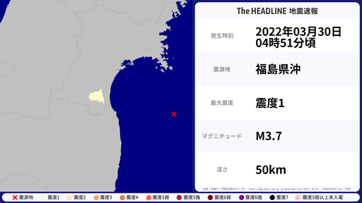 3月30日04時51分頃、宮城県で最大震度1を観測する地震がありました。