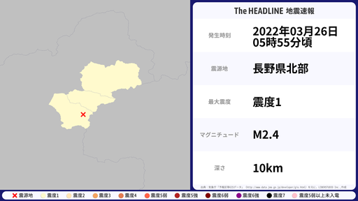 3月26日05時55分頃、長野県で最大震度1を観測する地震がありました。