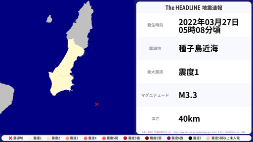 3月27日05時08分頃、鹿児島県で最大震度1を観測する地震がありました。