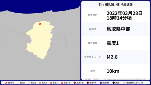 3月28日18時14分頃、鳥取県などで最大震度1を観測する地震がありました。