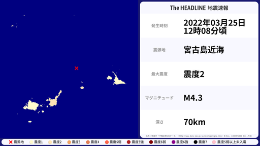3月25日12時09分頃、沖縄県で最大震度2を観測する地震がありました。