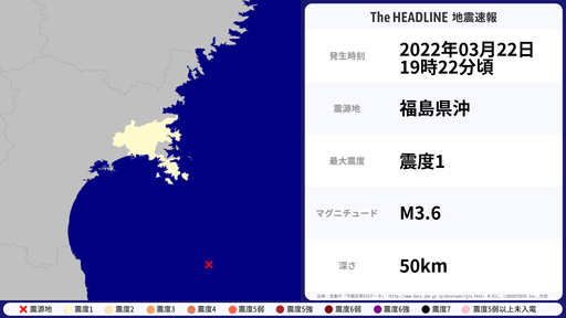 3月22日19時22分頃、宮城県で最大震度1を観測する地震がありました。