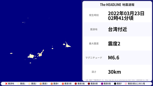 3月23日02時41分頃、沖縄県で最大震度2を観測する地震がありました。
