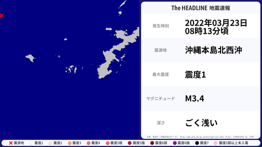3月23日08時13分頃、沖縄県で最大震度1を観測する地震がありました。