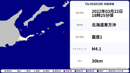 3月22日18時26分頃、北海道で最大震度1を観測する地震がありました。