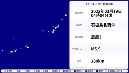 3月19日04時04分頃、沖縄県で最大震度3を観測する地震がありました。