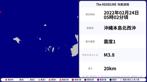2月24日05時02分頃、沖縄県で最大震度1を観測する地震がありました。