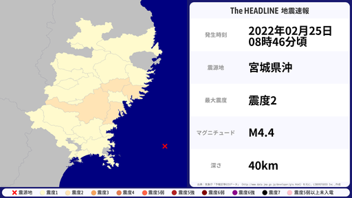 2月25日08時46分頃、岩手県などで最大震度2を観測する地震がありました。