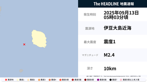 9月13日5時3分頃、東京都で最大震度1の地震を観測