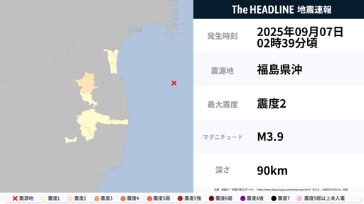 9月7日2時39分頃、福島県で最大震度2の地震を観測