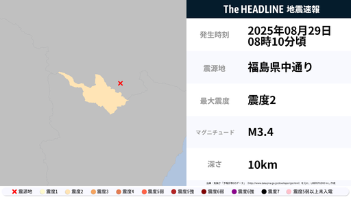8月29日8時10分頃、福島県で最大震度2の地震を観測