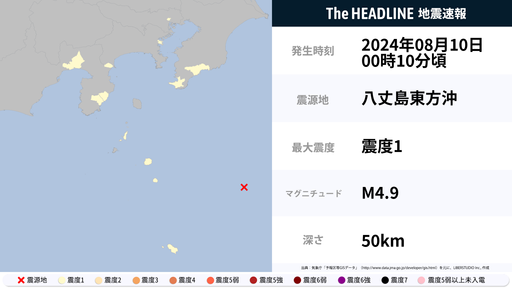 8月10日4時20分頃、宮崎県で最大震度1の地震を観測