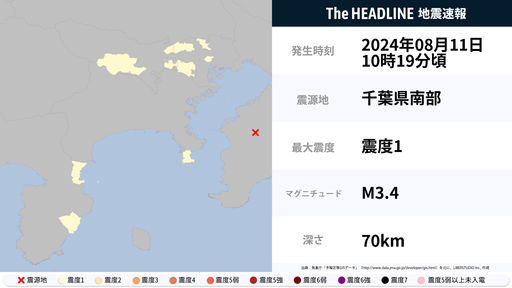8月10日0時10分頃、千葉県・東京都などで最大震度1の地震を観測