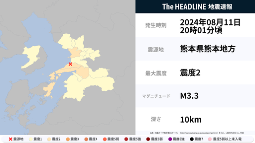 8月11日20時1分頃、熊本県で最大震度2の地震を観測