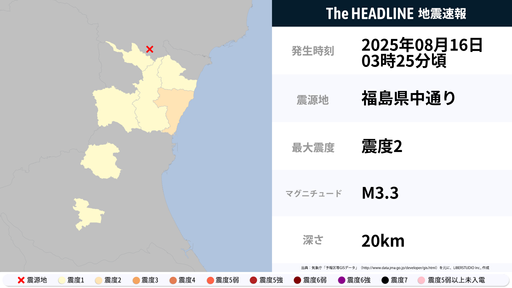 8月16日3時25分頃、茨城県で最大震度2の地震を観測