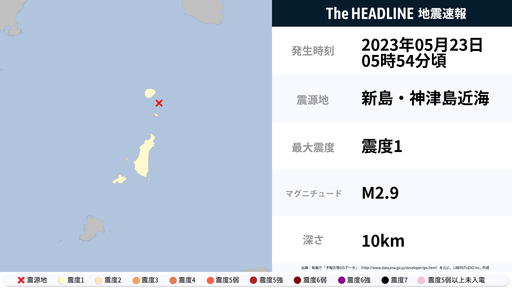 5月23日5時54分頃、東京都で最大震度1の地震を観測