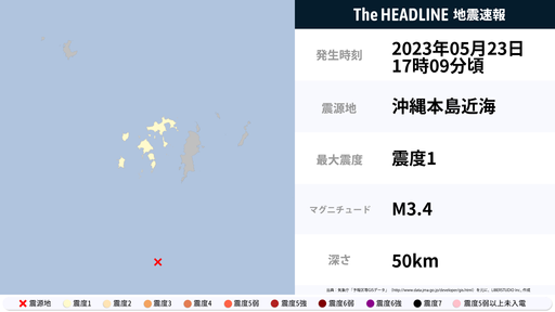 5月23日17時10分頃、沖縄県で最大震度1の地震を観測