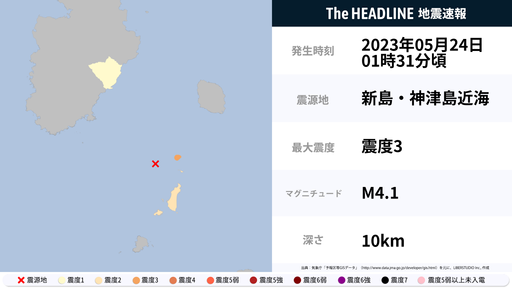 5月23日4時31分頃、東京都で最大震度3の地震を観測