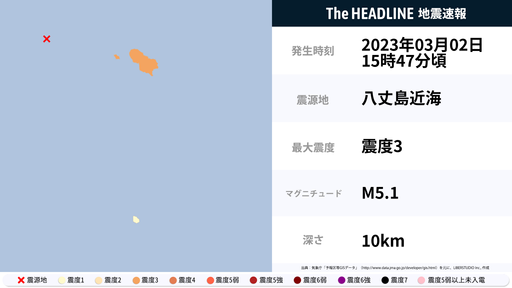 3月2日15時47分頃、東京都で最大震度3の地震を観測