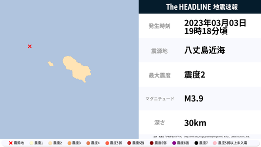 3月3日19時18分頃、東京都で最大震度2の地震を観測
