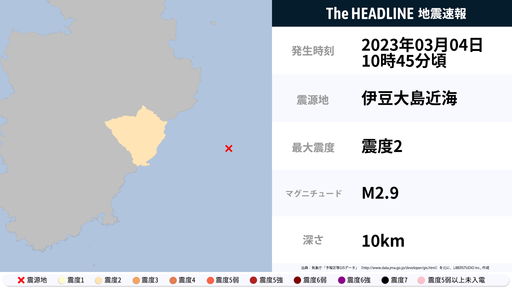 3月4日10時45分頃、静岡県で最大震度2の地震を観測