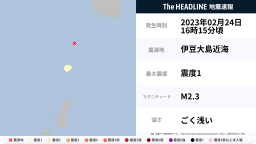 2月24日16時15分頃、東京都で最大震度1の地震を観測
