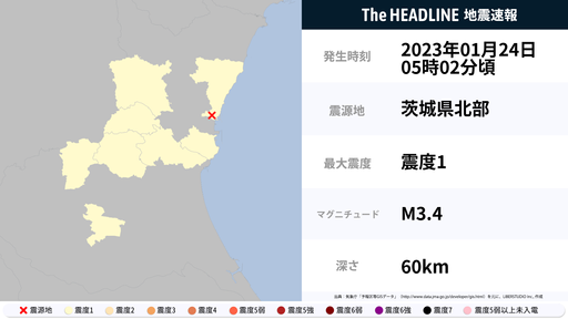1月24日5時2分頃、茨城県で最大震度1の地震を観測