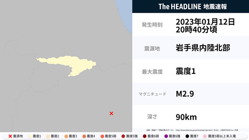 1月12日20時40分頃、青森県で最大震度1の地震を観測