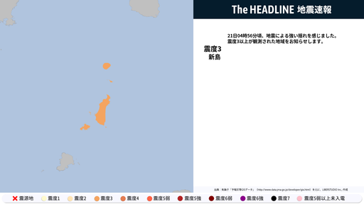 12月21日4時56分頃、東京都で震度3以上の地震を観測