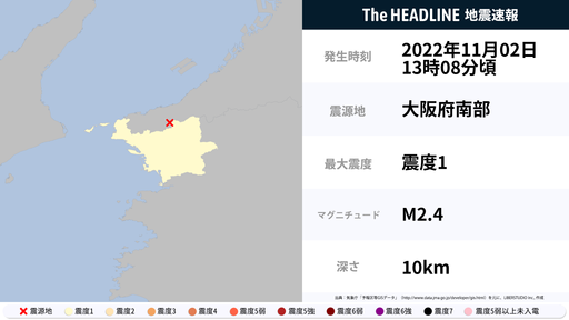 11月2日13時9分頃、和歌山県で最大震度1の地震を観測
