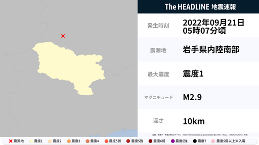 9月21日5時7分頃、宮城県で最大震度1の地震を観測