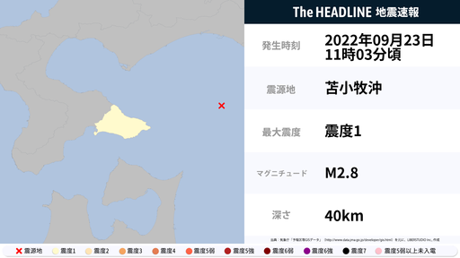 9月23日11時3分頃、北海道で最大震度1の地震を観測