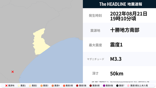 8月21日19時10分頃、北海道で最大震度1の地震を観測