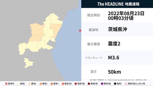 8月23日0時3分頃、茨城県で最大震度2の地震を観測