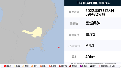7月28日09時32分頃、岩手県で最大震度1を観測する地震がありました。