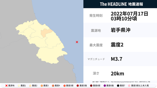 7月18日20時15分頃、岩手県で最大震度1を観測する地震がありました。