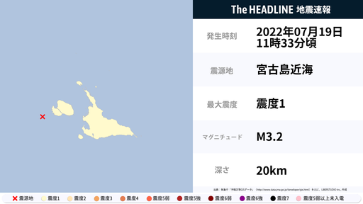7月19日11時33分頃、沖縄県で最大震度1を観測する地震がありました。