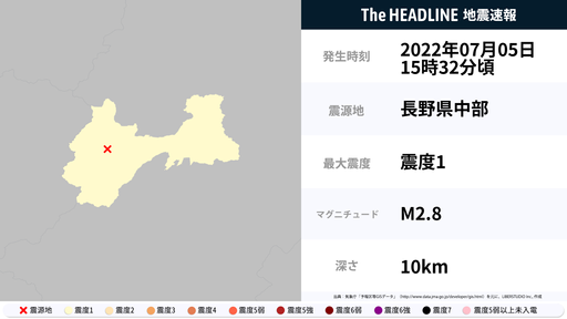 7月5日15時32分頃、長野県で最大震度1を観測する地震がありました。