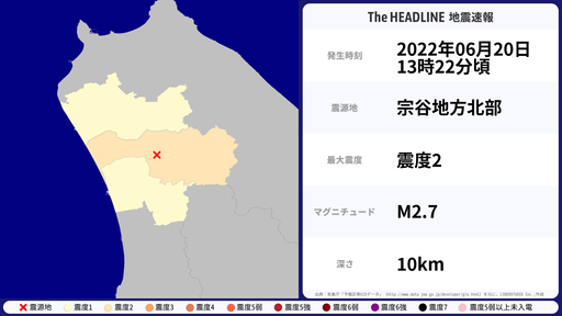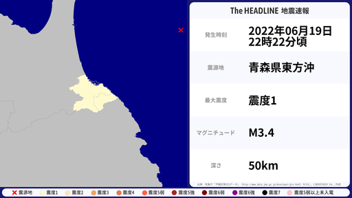 6月19日22時22分頃、青森県で最大震度1を観測する地震がありました。