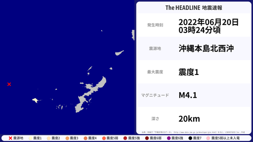 6月20日03時24分頃、沖縄県で最大震度1を観測する地震がありました。