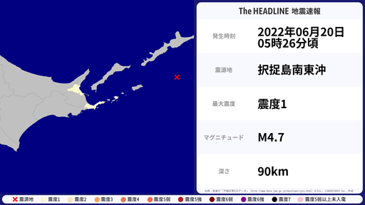 6月20日05時27分頃、北海道で最大震度1を観測する地震がありました。