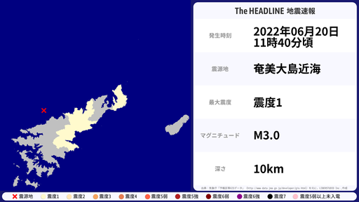6月20日11時40分頃、鹿児島県で最大震度1を観測する地震がありました。