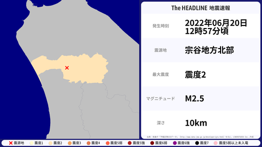 6月20日12時57分頃、北海道で最大震度2を観測する地震がありました。