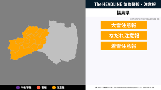 1月26日16時10分、福島地方気象台は、福島県に発表されている警報・注意報の経過、予測、防災上の留意点などを解説するために発表していた気象情報を更新した。